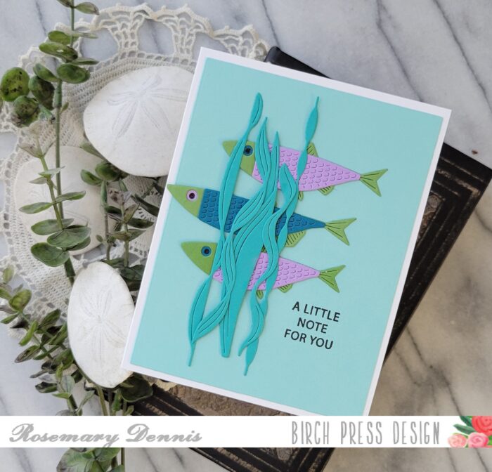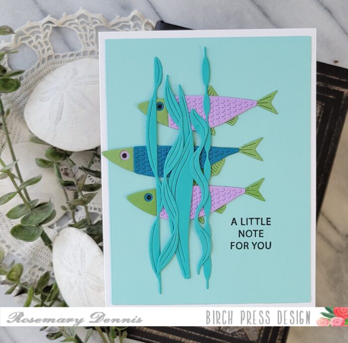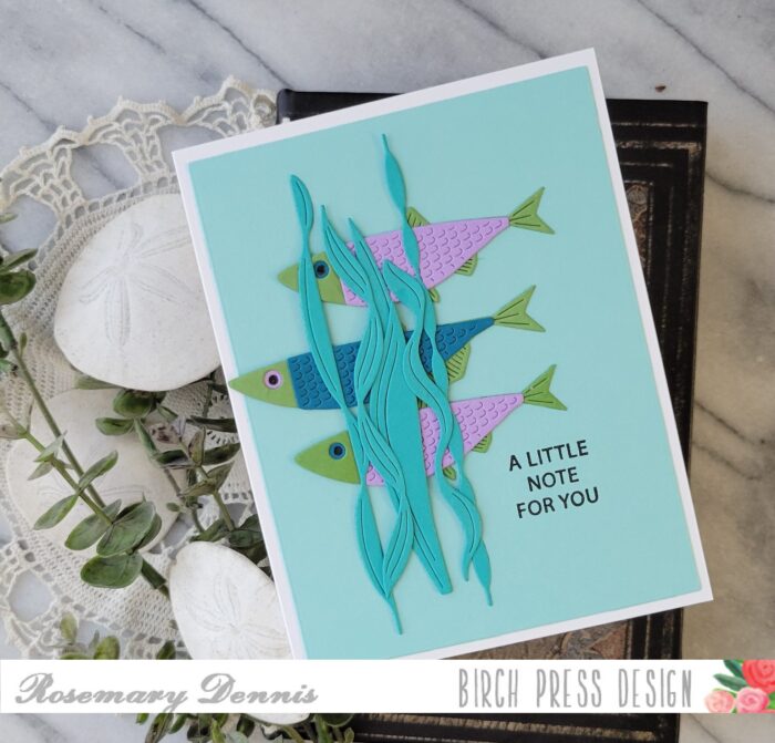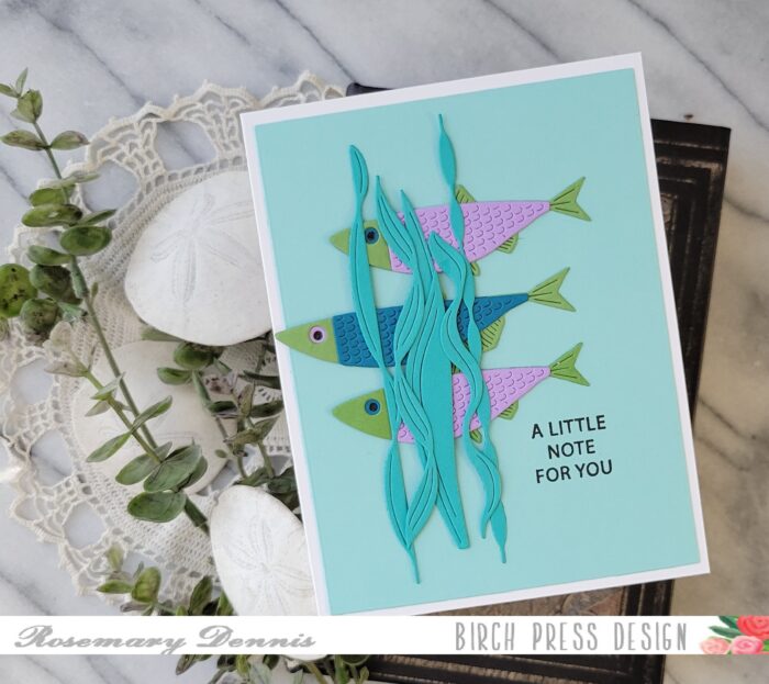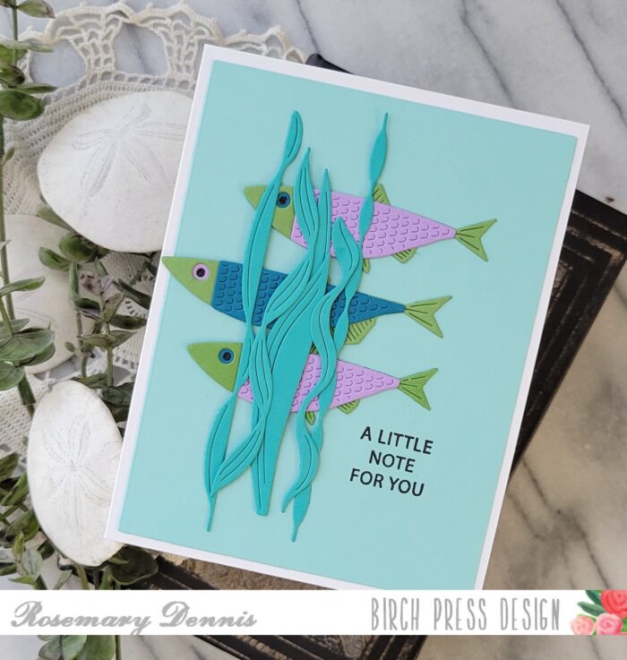 Hello everyone! Rosemary here on the blog today. Can’t believe it is already October! 2025 is definitely flying by, lol! I’m sharing a card today that I created with the fun Block Print Sardines and Sea Kelp and Mini Fish die sets. Let’s look at what I made.