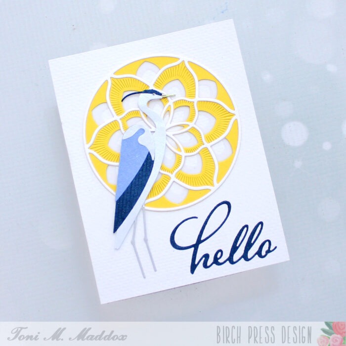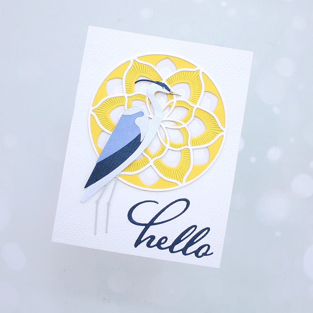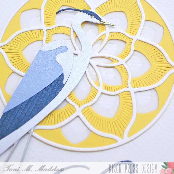 Next, I constructed the Block Print Majestic Heron using a shimmer cardstock in ombre shades of blue. I love that sparkle!