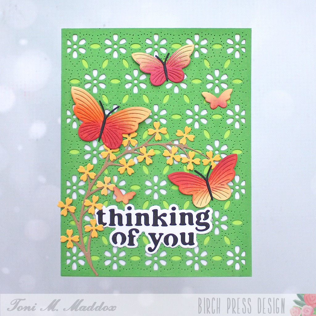 Are you ready for nicer weather, my friends? Toni here and I’m very much looking forward to spring so I channeled that into a cheerful card.